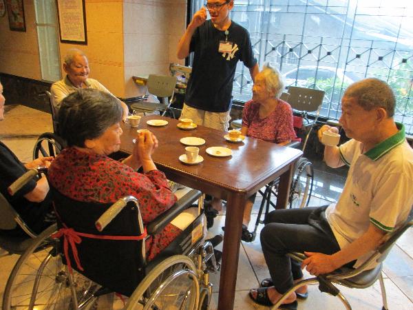 下åˆèŒ¶è«‡å¤©æ´»å‹•,æ¯ä½çˆºçˆºå¥¶å¥¶é–‹å¿ƒåœ°åƒè‘—餅乾å–著熱茶,談天說地,真是愉悅!