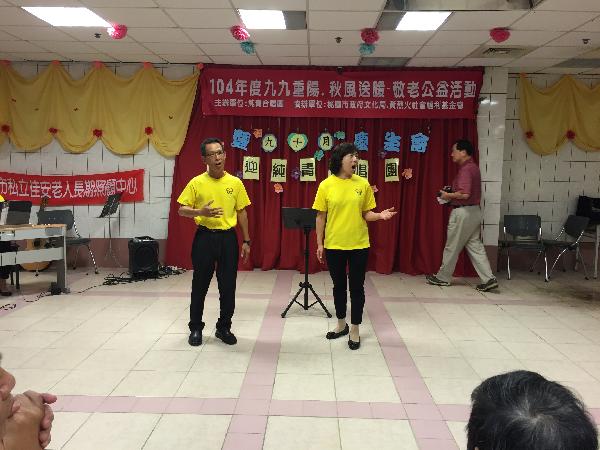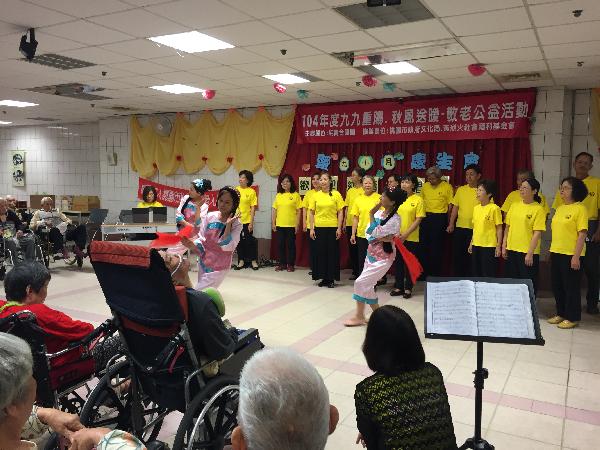 本週21ã€25號為é‡é™½ç¯€æš¨ä¹ã€å月慶生系列活動, 邀請到黃烈ç«ç¤¾æœƒç¦åˆ©åŸºé‡‘會所接洽的純é’åˆå”±åœ˜ èˆ‡å¤§æºªå€æ°‘大å¸-çƒå…‹éº—麗社團來為爺爺奶奶們帶來表演。 æŒæ›²è±å¯Œå¤šå…ƒã€è¡¨æ¼”輕快活潑,連爺爺奶奶都å¿ä¸ä½è·Ÿè‘—唱起來了呢! ç¥æ‰€æœ‰çš„長輩與壽星們佳節快樂~
